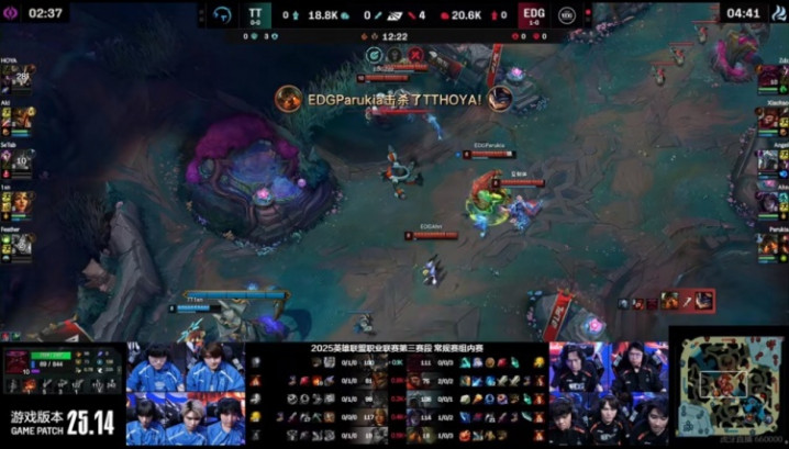 直播吧7月20日讯2025年LPL第三赛段常规赛正在进行中,今天的首场比赛是涅槃组的EDG对阵TT!