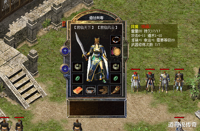 第一,跳点降魔不管是垫刀还是专门而为之,能在官服升级出来跳点武器确实不容易。如上图所示,这把降魔就是一把跳点神兵,足足升级了8点道术属性确实炸裂。其高道输出一点也不逊色名牌道士神兵,而且还自带1点准确适合挂机。
