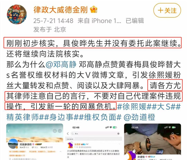 前两天,她直接点赞了莉姐律师的微博,这个律师发布的视频里,主要内容就是保障两个孩子能够获得遗产。