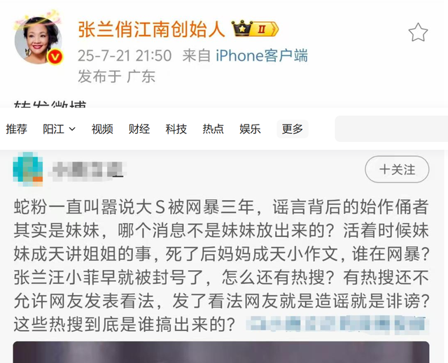 但另一部分网友则认为,张兰此举有炒作嫌疑,毕竟她的直播事业,与娱乐圈话题紧密相关。
