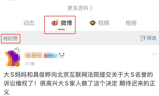 偏偏就在这时,一个律师点赞了S妈和光头想要维护名誉权的动态。