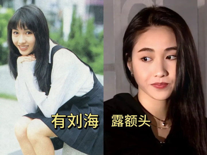 早期少女时期留过齐刘海,清纯少女感,但很明显,她露出额头的长发造型,让她看起来更加明艳动人!