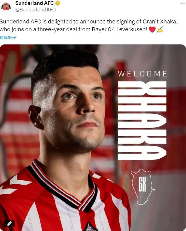官方:桑德兰宣布从勒沃库森签下了32岁的中场扎卡,双方签署了一份3年合同。
