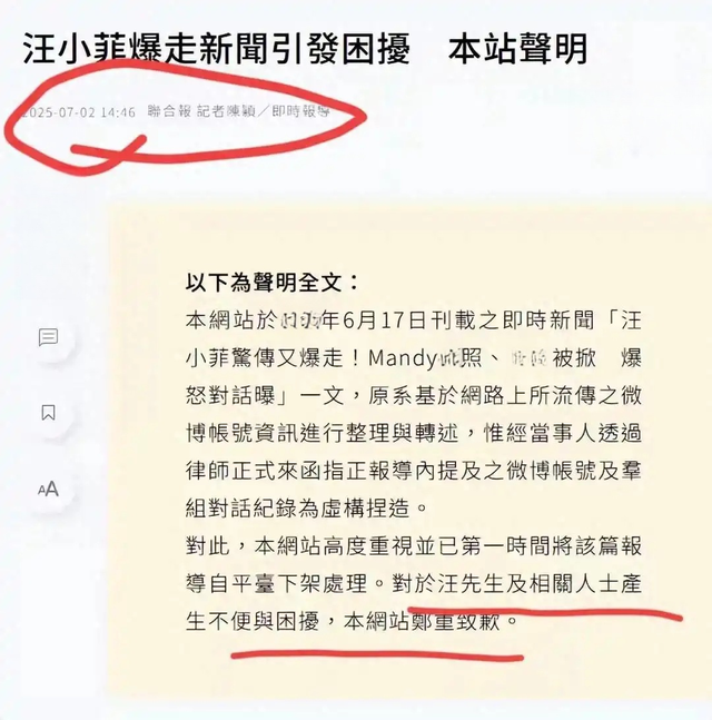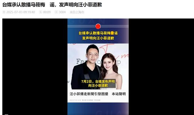 2、凤凰网(2025-7-3):《台媒承认散播马筱梅谣言,发声明向汪小菲道歉》