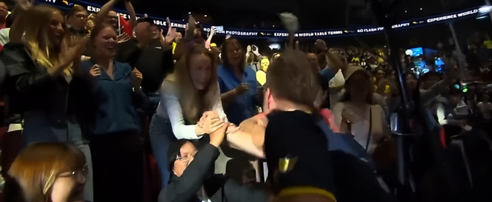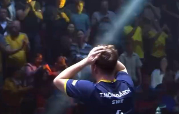 平复了心情之后,小莫第一时间跑到家人身边与家人一一握手、击掌,小莫本次大赛是完全主场作战,他就是瑞典本土球员,所以这场决赛几乎都是为他加油呐喊的声浪。