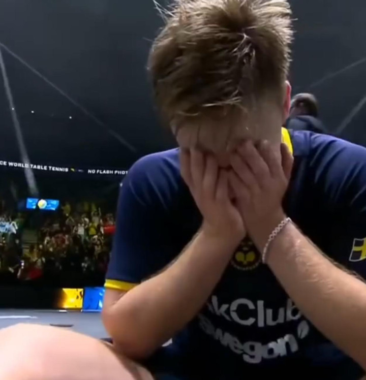 莫雷加德这场比赛赢得并不轻松,虽然他前四局是3-1领先,可林诗栋逐渐进入状态,11-4、13-11连赢两局进入决胜局,决胜局林诗栋还一度9-8领先,莫雷加德与林诗栋的最后一分长台的对决无比精彩,当小莫拿到第11分时他激动的坐在地上捂脸落泪了。