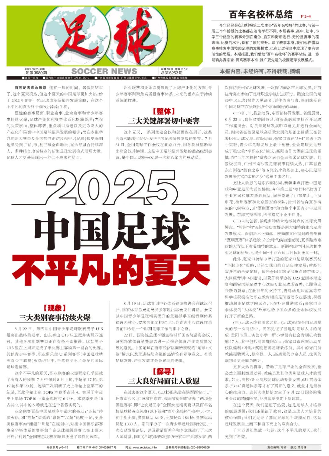 在这个夏天,我们见证了热爱,这是足球人才培养的底层逻辑;我们还见证了教育,这是足球人才培养的核心保障;我们更见证了基层足球的主观能动性,这是足球发展自上而下和自下而上的双向合力。