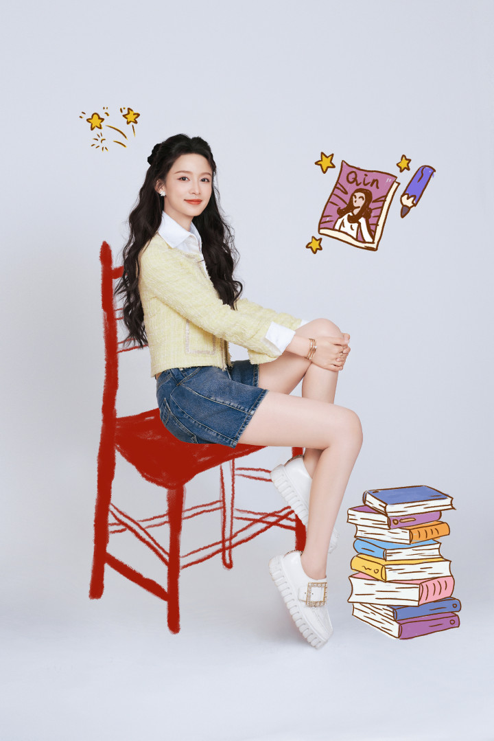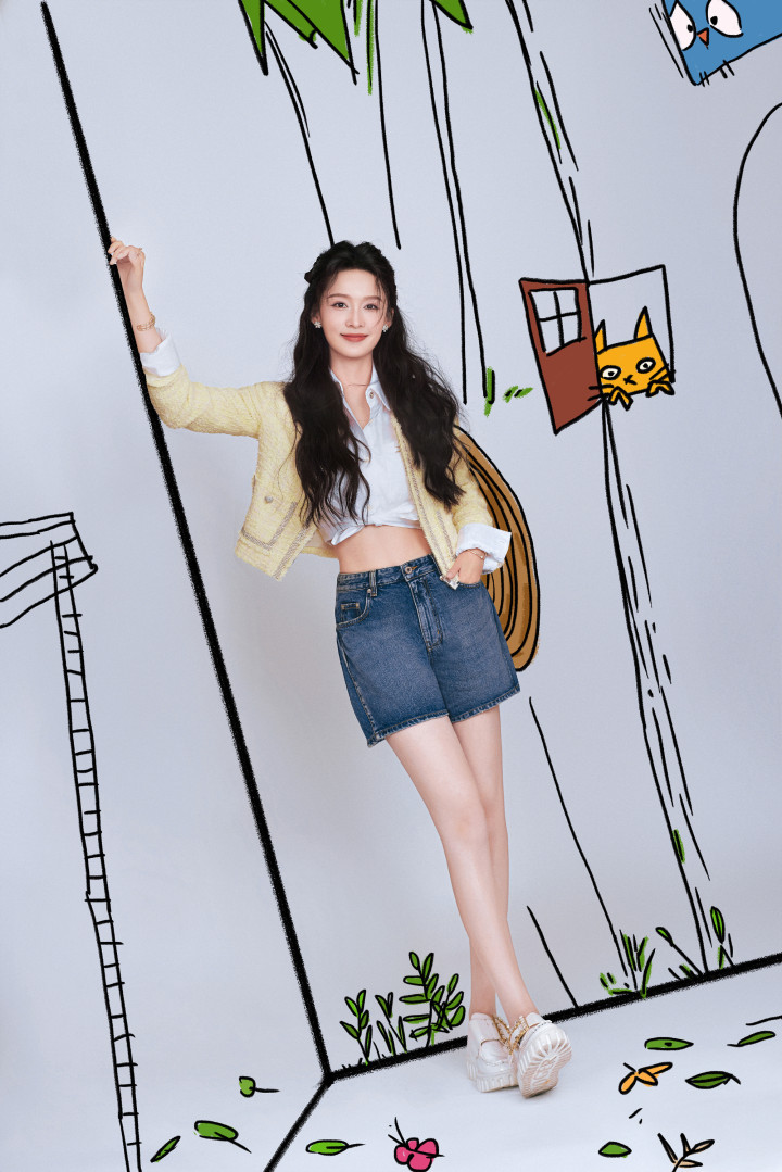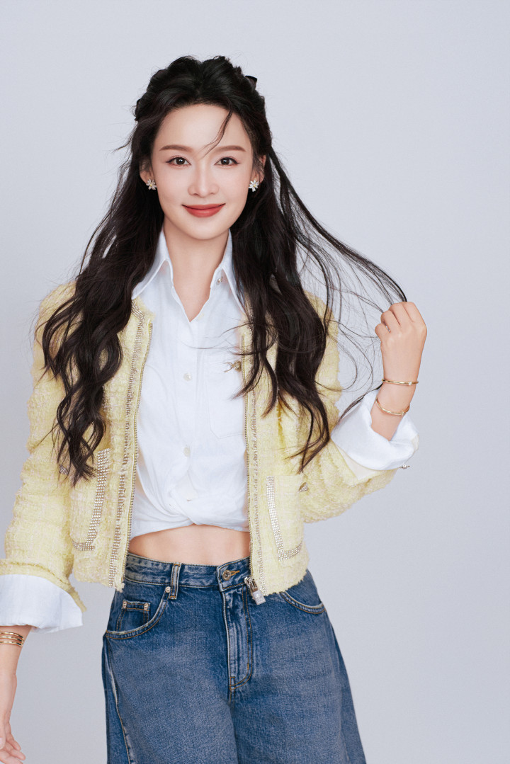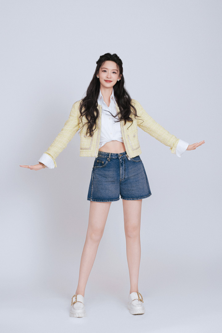 李沁把春日穿在身上! 浅黄小香风叠穿, 活力清爽太明媚