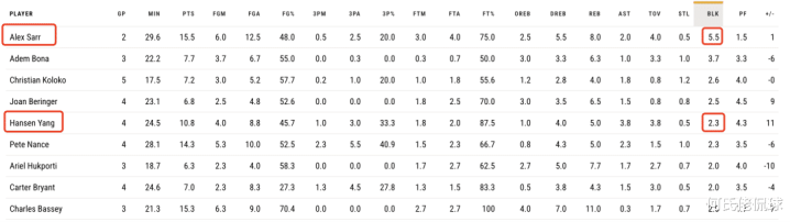 我们从夏季联赛的盖帽榜数据来看,打得好的球员并不多,除了萨尔之外,皮特-南斯和巴锡这些数据出色的球员基本上都是有NBA经验,甚至是球队主要轮换的球员。