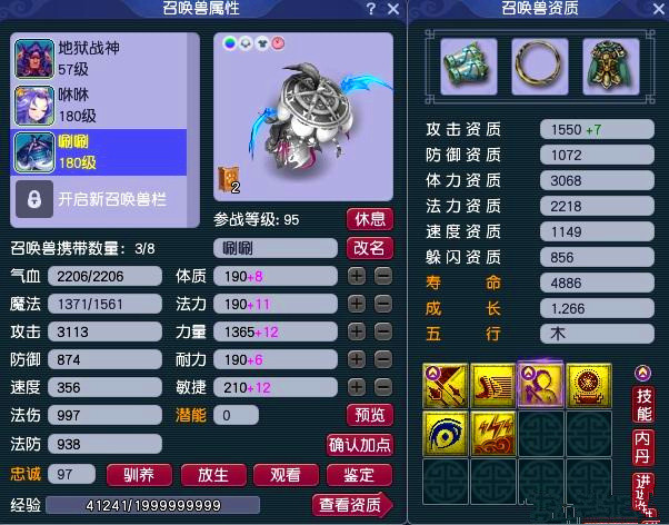 上面这位玩家现在弄出来的是一只拥有着出其不意和善恶有报两个特殊技能的吸血鬼。而且这只吸血鬼还是超级合纵的赐福。当触发了超级合纵之后上面的这只召唤兽触发恶报时造成的伤害肯定特别高。但是当善恶有报的另外一个技能效果如果跟出其不意和高级合纵叠加,那么上面的这只召唤兽给怪物加的气血也会特别多。在某些机遇巧合的情况下,一个善报给对面的怪物加1万多点血都是很有可能的。小编见过的善恶宠中最多给对面的怪物加了3万多血呢。