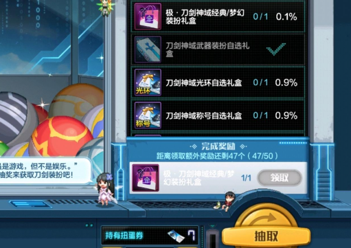 还真别说,有玩家三发就抽到了这至尊刀剑神域皮肤,这运气也是不错了。另外这次的刀剑神域武器装扮也是很难抽到的,但有玩家抽到后就后悔了,这武器装扮搭配上武器自带的特效就显得很廉价了啊,策划应该出一个关闭武器特效的功能。