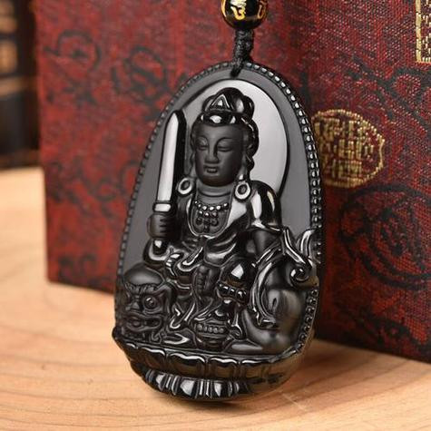 素心双手接过锦盒,指尖触到盒面的莲花纹,一股暖意从指尖蔓延到心口。她打开盒子,里面躺着一枚吊坠——黑曜石通体漆黑,却透着温润的光泽,文殊菩萨的像雕刻得细致,眉眼间满是慈悲威严,菩萨手持智慧剑,剑穗的纹路清晰可见。“老禅师,这……”