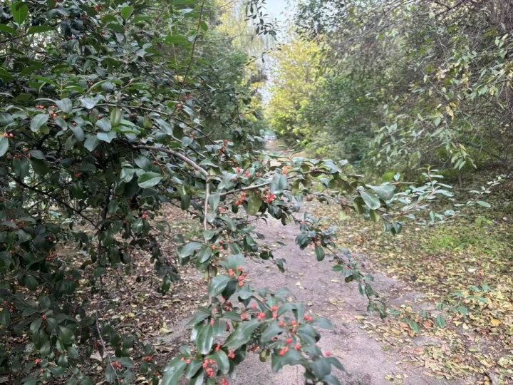 围挡在西北角的地方有一个缺口,缺口里的草丛间有被踩出的路,印证了这世上本没有路,走的人多了便成了路。沿着这踩出的路往里面走不了多远,便遇到了真正的路——一条被废弃了的水泥路,又印证了这山包上,原本是有路的,原本是可来的。
