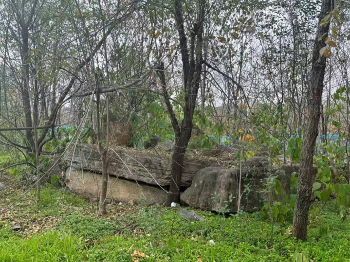 路边林中,有废弃的景观石造型,也有各种不明所以的垃圾,还有大小便的显著痕迹。
