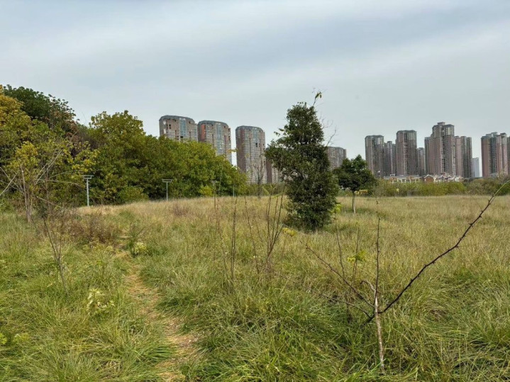 沿路往南走,居然还有一片比较平整的开阔地,不太有树,草在野蛮地生长,远处还有废弃的貌似路灯的灯杆。更远处,是城市的高楼和别墅,与这荒草地,算是相得益彰呢,还是相映成趣呢,抑或相对尴尬呢?