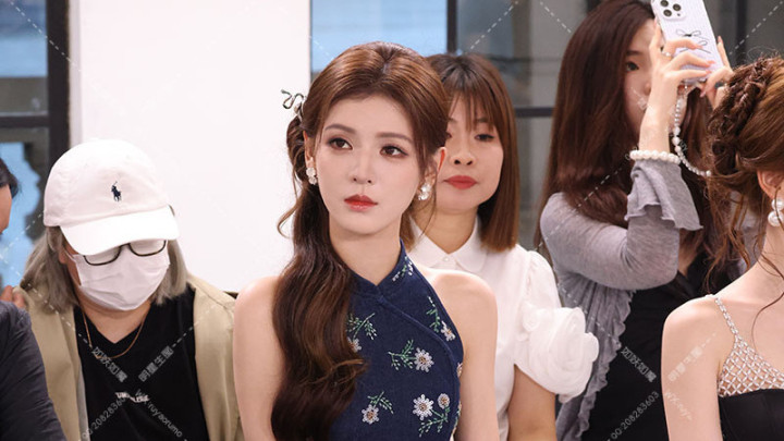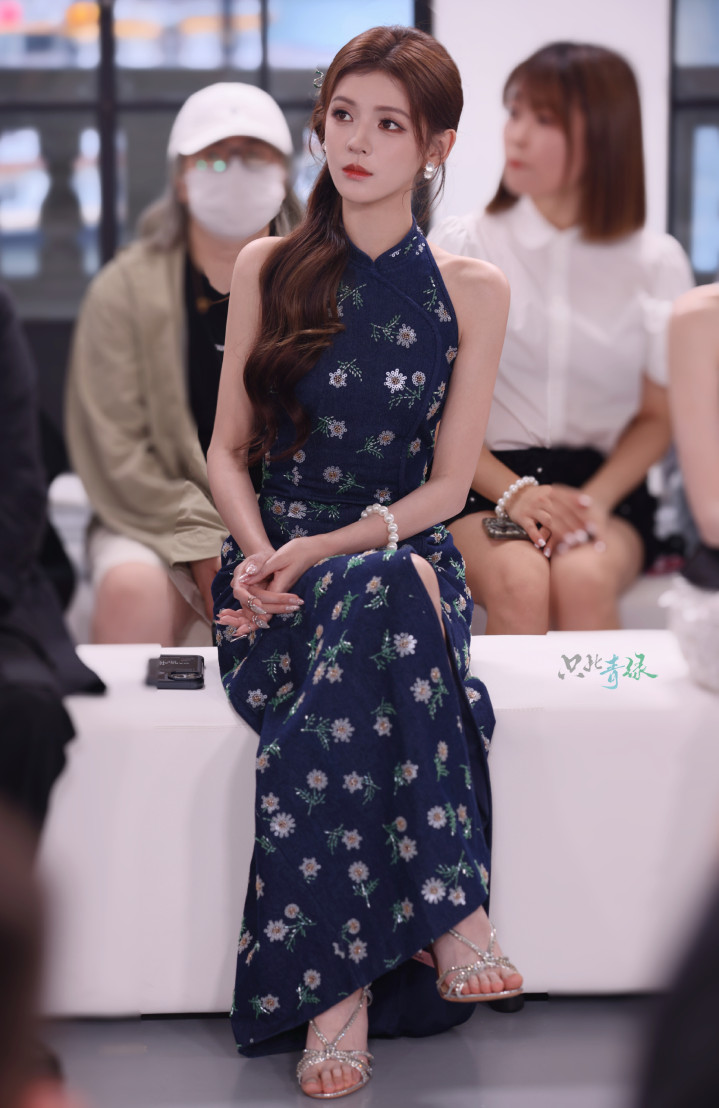 张予曦中式挂脖旗袍造型,开叉设计尽显修长美腿与优雅气质