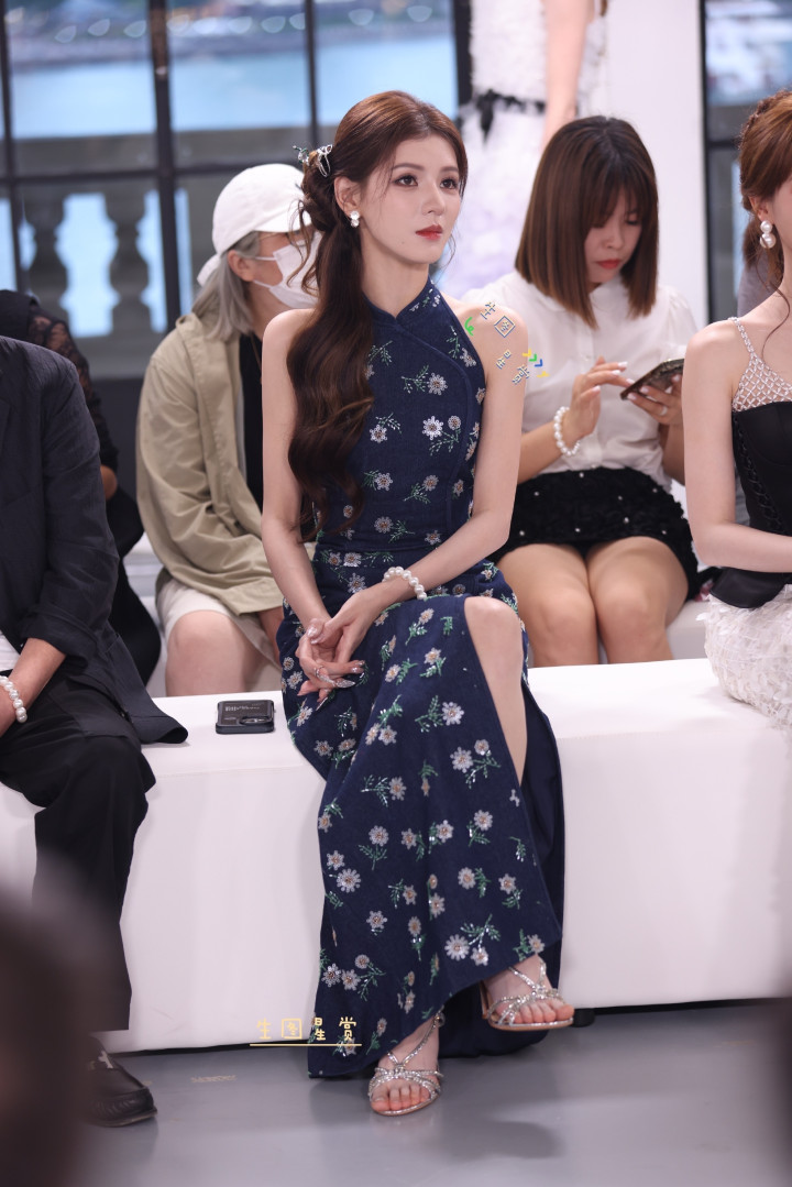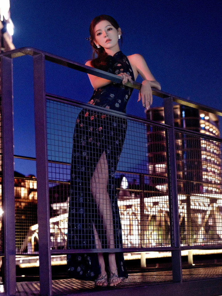 张予曦中式挂脖旗袍造型, 开叉设计尽显修长美腿与优雅气质